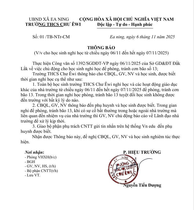 • Thông báo khẩn (nghỉ học chiều 06/11 đến hết ngày 07/11/2025)